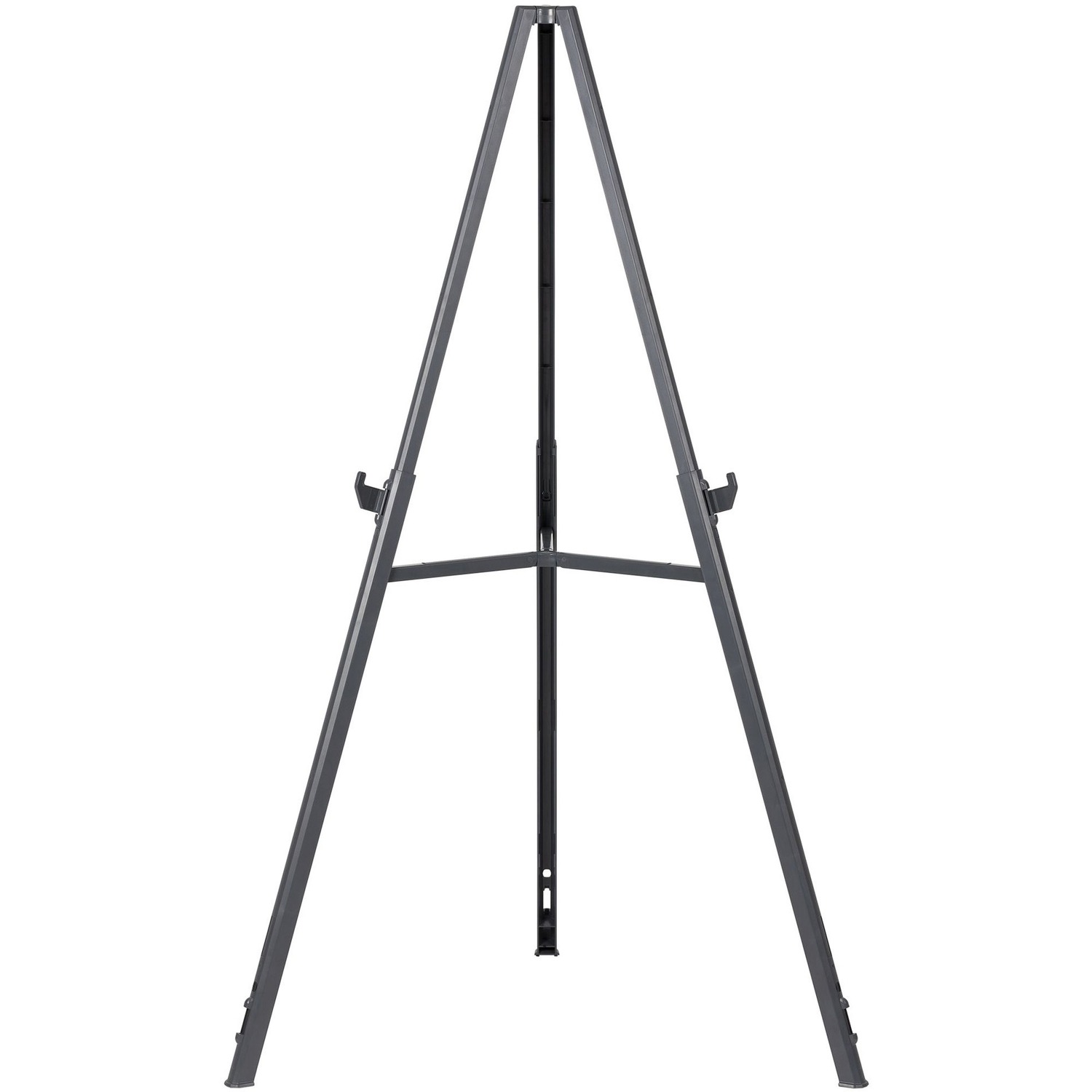 Quantum display easel is a dynamic and versatile easel that effectively covers all of your display needs. Only weighing 3 lb., its ABS plastic construction is lightweight yet sturdy to securely hold up to 25 lb. Two display support brackets and a center brace allow you to display everything from posters to picture frames. Nonskid feet ensure that the easel will not shift on smooth surfaces to sit reliably in place. The retractable legs increase portability and make bringing this easel to your next presentation a breeze. Height-adjustable design can be set from 37" to 62" for versatile display options. Use the smaller-size setting to display on a tabletop, and the standard-size setting when you're presenting on a floor.