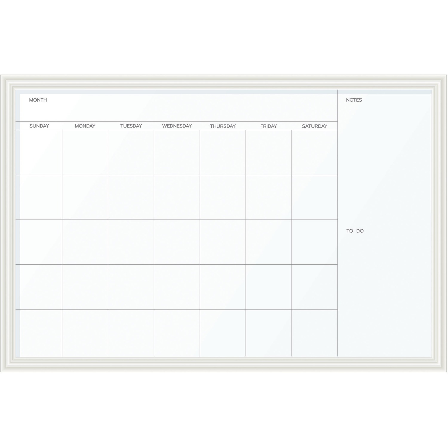 This white wood finish, modern decor dry erase calendar board is a perfect and functional solution for the frequent usage areas of your office, school classroom, home or any commercial space. Clean, contemporary and simple product design lines will add a touch of subtle style to your wall. Although all dry erase markers work well with this board, the U Brands dry erase markers provide the ultimate writing and eras-ability experience. The board's magnetic painted steel writing surface will require minimal ongoing cleaning care to ensure the best performance and resist ink staining and ghosting. Monthly view enables you to keep track of your hectic schedule. Simply use any dry erase board spray or wet dry erase board wipes after continuous use to clean the writing surface. You may also attach all U Brands magnetic board markers and accessories (sold separately) directly onto the board surface. This whiteboard board has a universal mounting system, as it can be hung horizontally to fit your allocated space.